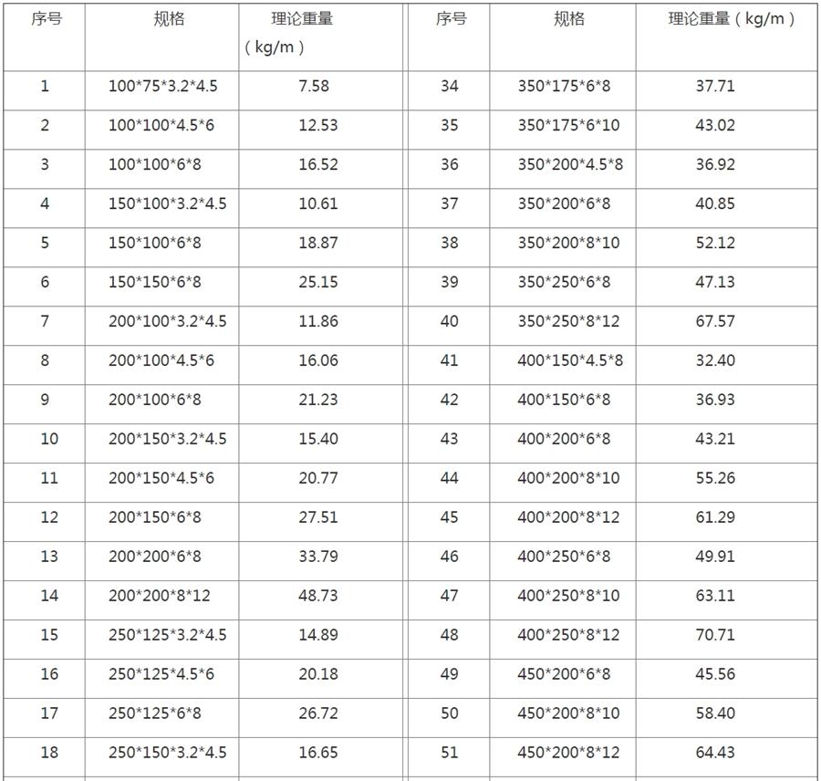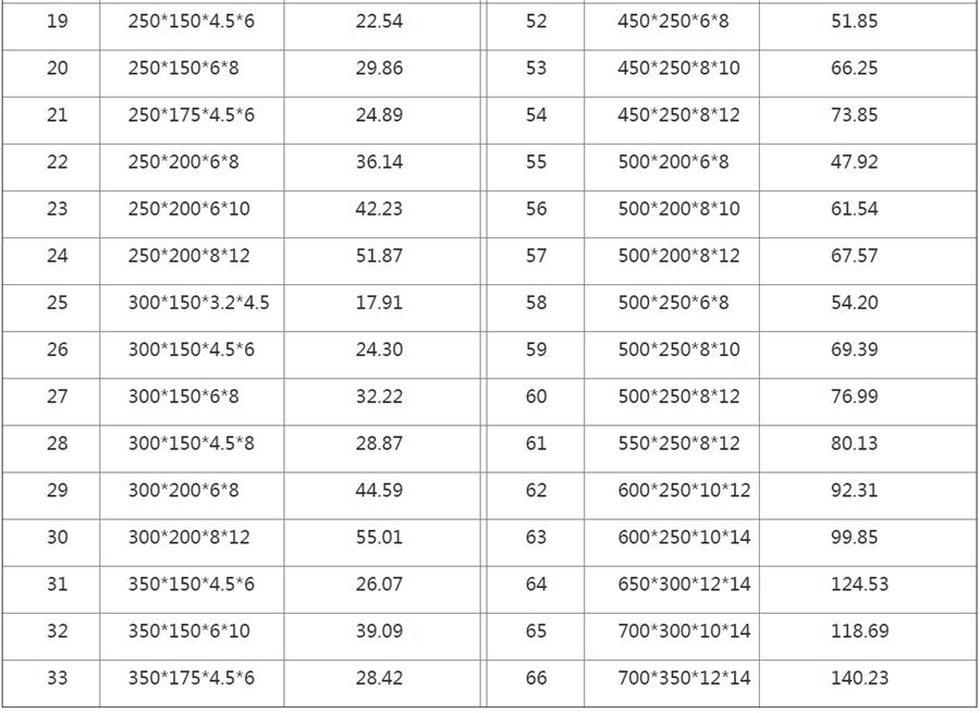 四、H型鋼的規(guī)格與重量表